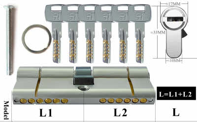 Cylindres antivol à 11 broches avec 6 clés réversibles