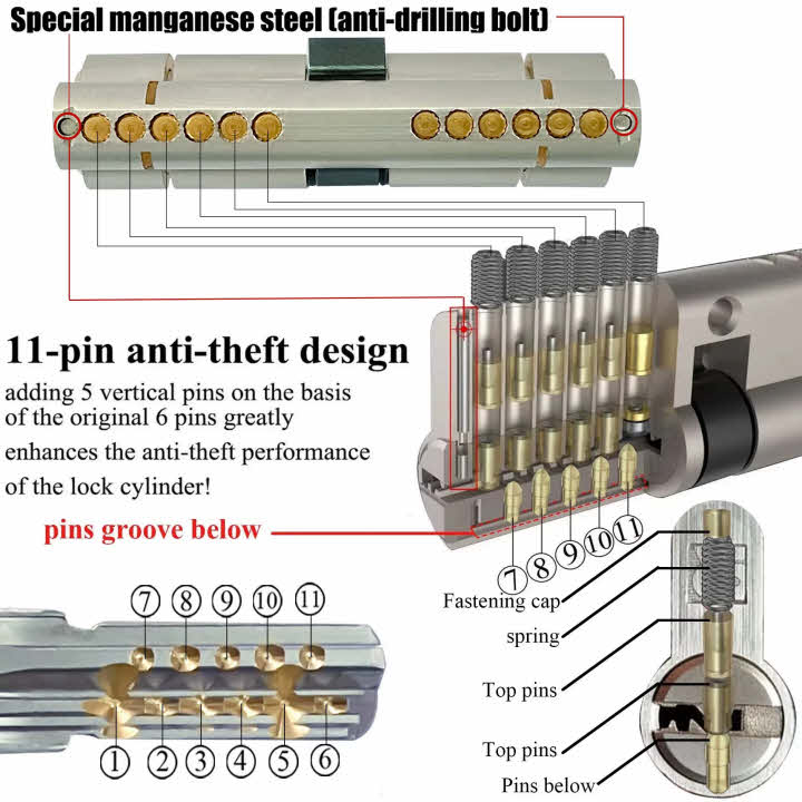 Cylindres antivol à 11 broches