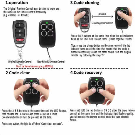 8. Si votre télécommande est à code tournant, après le clonage, la nouvelle télécommande doit être programmée/activée sur le récepteur, la nouvelle télécommande fonctionne.